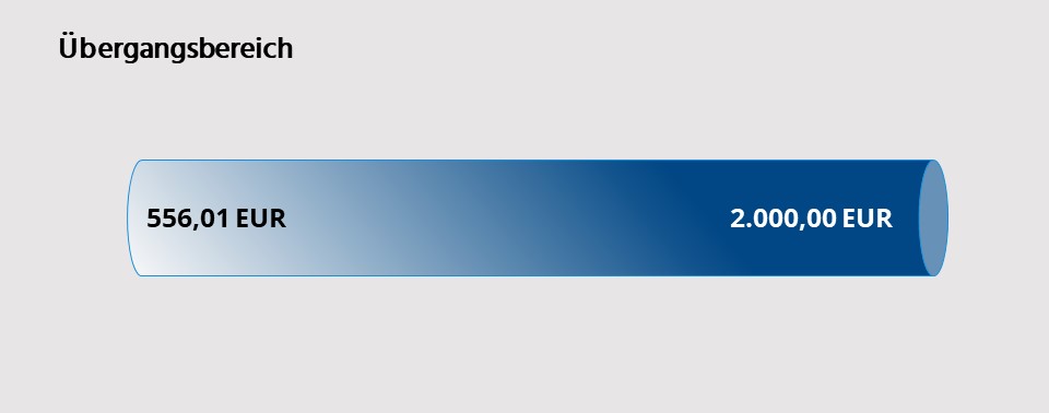 Der Übergangsbereich (ehemals Gleitzone) umfasst – aufgrund der Anhebung des gesetzlichen Mindestlohns und der damit einhergehenden Anhebung der Geringfügigkeitsgrenze – vom 1. Januar 2025 an Beschäftigungen mit einem regelmäßigen monatlichen Arbeitsentgelt von 556,01 bis 2.000,00 EUR: